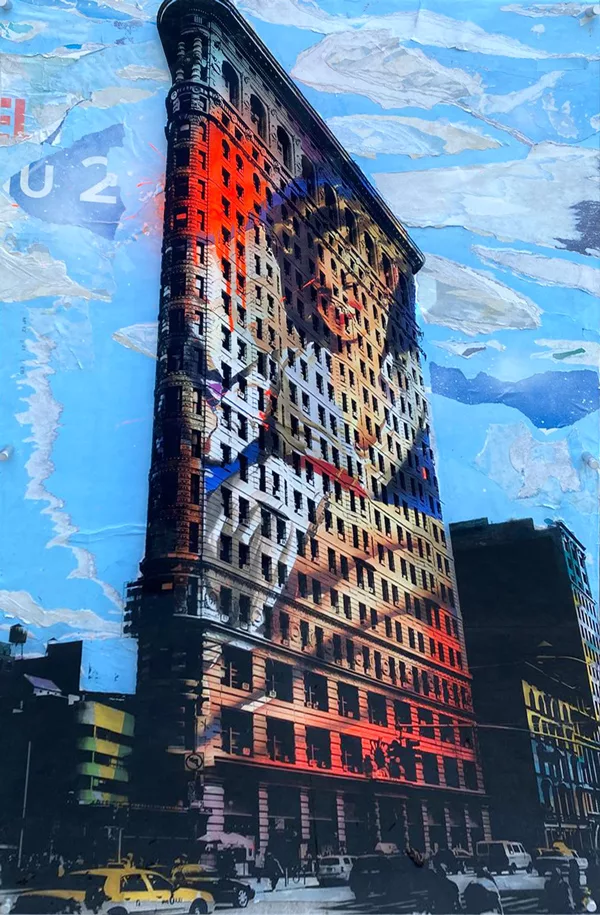 Technique mixte. Impression photographique sur plexiglas, collage et peinture sur toile. Chassis bois.